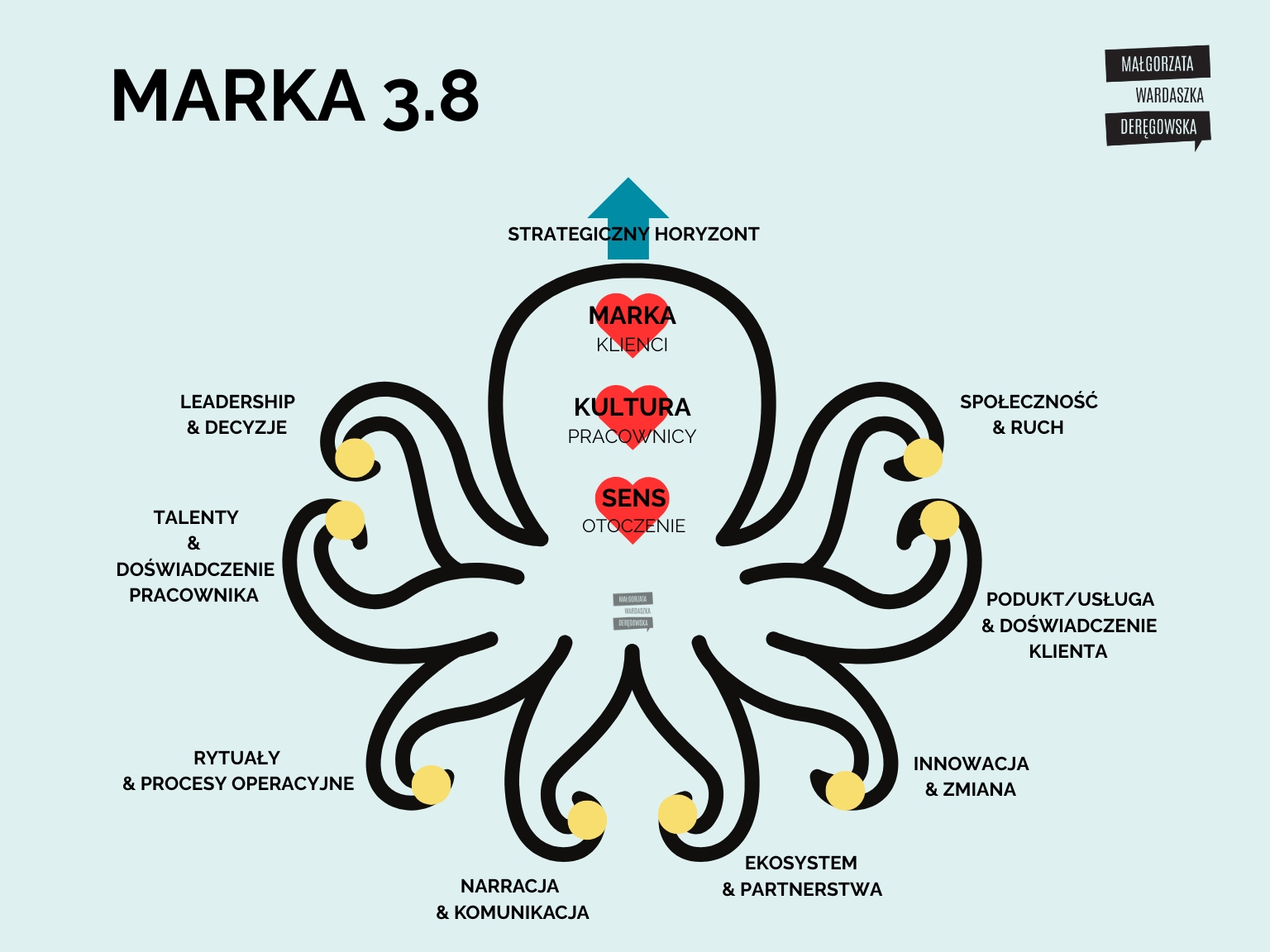 Twoja firma jest jak ośmiornica ma 3 strategiczne Serca (Markę, Kulturę, Purpose) i 8 operacyjnych Ramion (wszystkie codzienne działania).